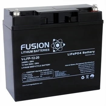 Fusion Lithium Ion Phosphate Batteries (also known as Lithium Iron Phosphate Batteries) are an extremely light weight battery designed for deep-cycle (cyclic) applications and are a completely dry battery making them spill-proof and leak- proof. They can sit unused for over a year without losing charge and can also be charged extremely quickly without damaging the battery.