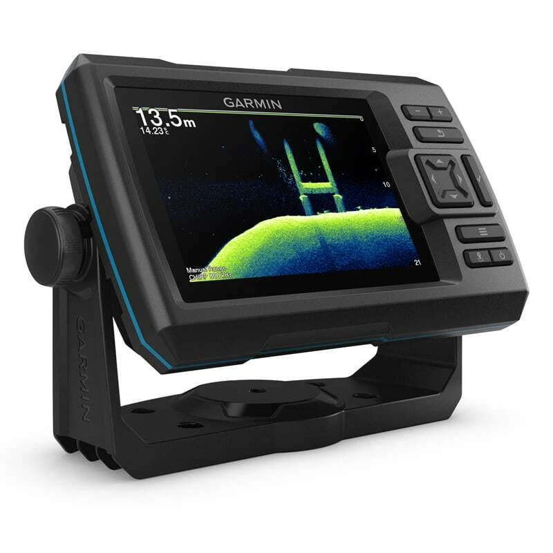 Garmin Striker Plus 5cv Fishfinder with GT-20TM Transducer has a bright 5” display and built-in GPS features Garmin CHIRP traditional sonar, Garmin CHIRP ClearVü™ scanning sonar and Quickdraw Contours map drawing software, which stores up to 2 million acres of content with 1’ contours. The built-in GPS lets you mark and navigate to waypoints and shows your boat’s speed.