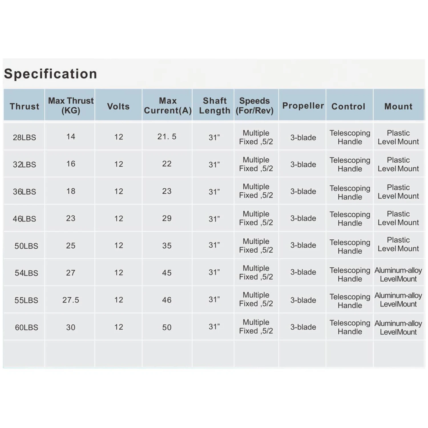 - Weed-less 3 blade propeller runs faster and quiet.