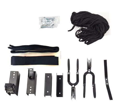 Store your kayak overhead and out of the way. The smooth pulleys and latches make lifting even the heaviest of kayaks easily. The exclusive rope locking mechanism prevents unwanted release and guarantees secure suspension. With sturdy, powder coated steel construction, the pulley system is solid, durable and built to last.