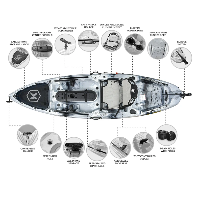 - 4x Preinstalled Track Rails for installing GoPro, Fish Finder, Rod Holders etc.