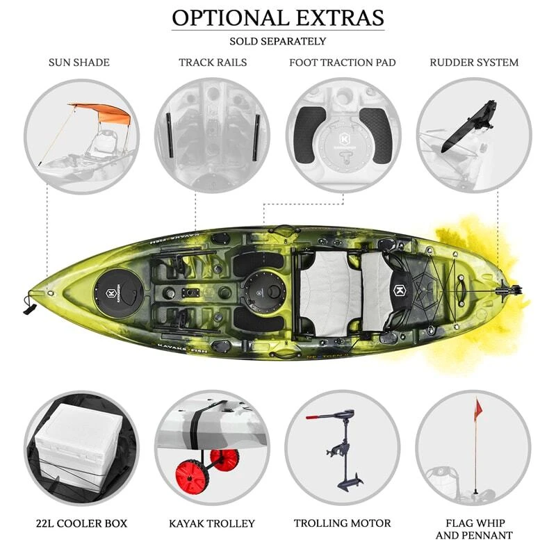 - Option to install Tracks along the length of Kayak, useful for attaching various accessories such as GoPro, Fish Finder etc.