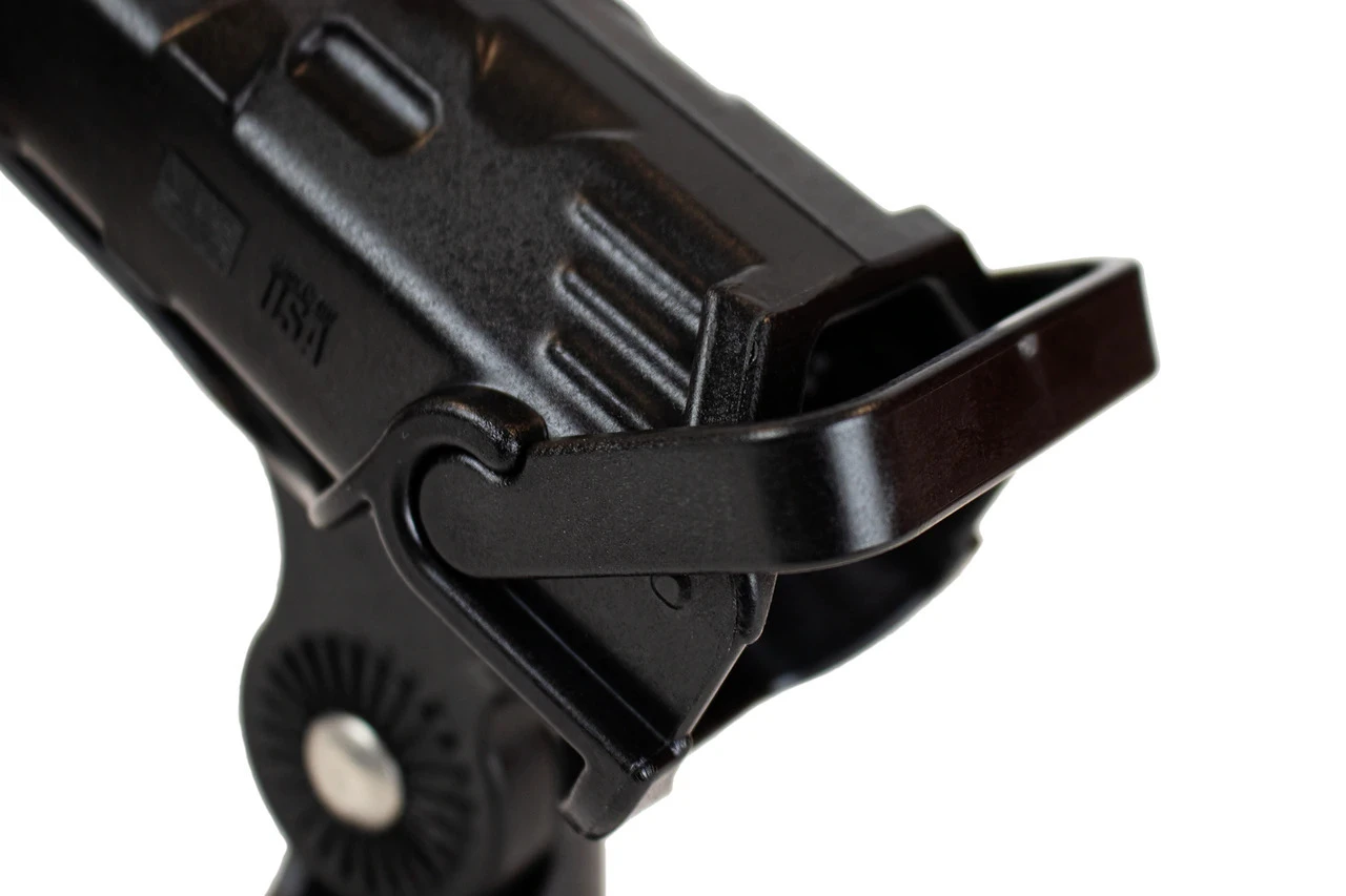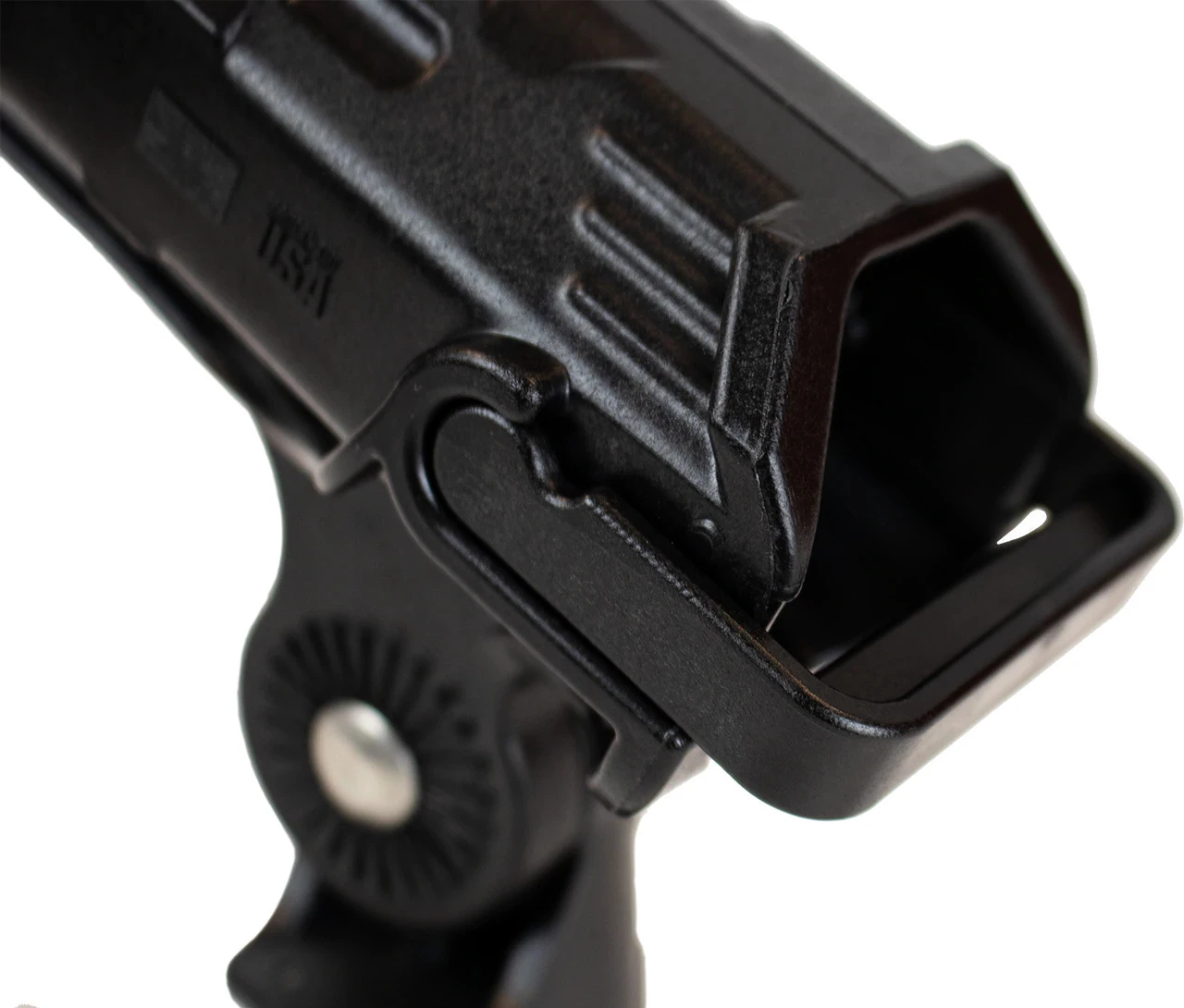 – In adjustment mode, the mount can be rotated in any direction, but cannot be removed, ensuring the rod holder is completely secure while making adjustments, even if a fish hits. Let go of the lever and you are back in locked mode.