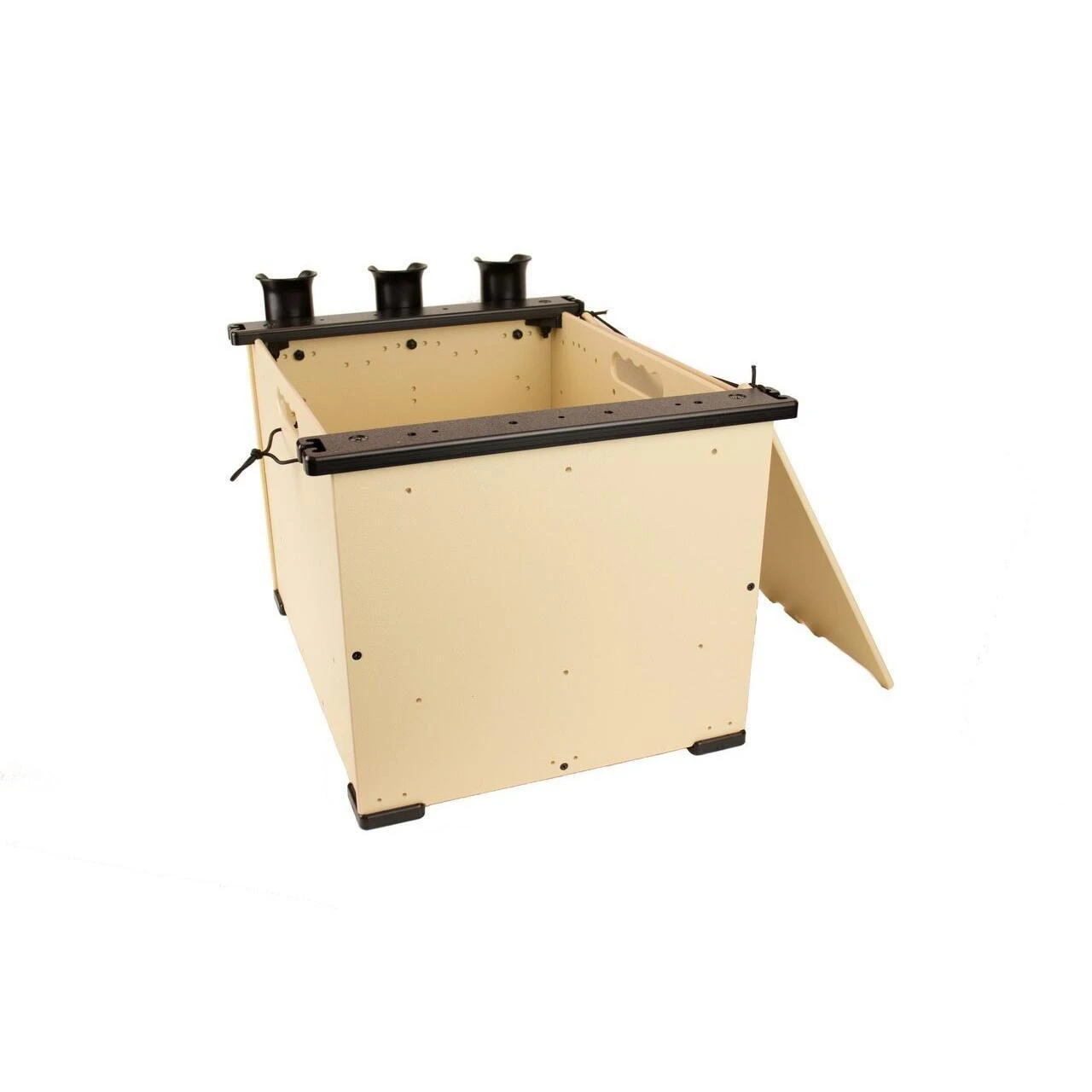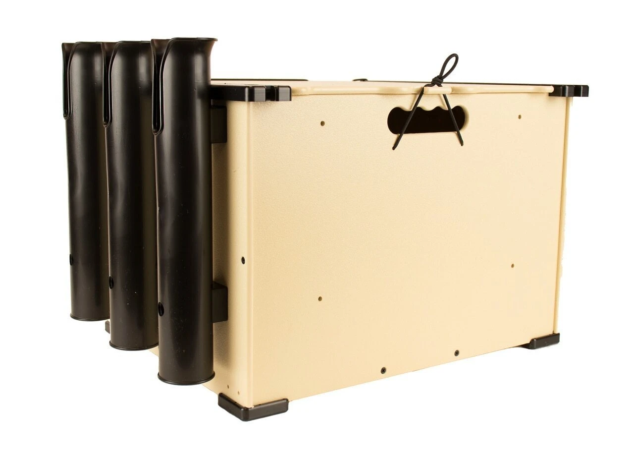 Yak Attack 12″X16″X11″ crate system has 10 stations for rod holders which can be mounted at a variety of angles for a total of 50 possible positions. The top rails are designed to accept MightyBolt accessories, eliminating the need for GearTracs or Mighty Mounts to attach your VISICarbon Pro, PanFish, or other MightyBolt compatible accessories. Includes lid and 3 rod holders.